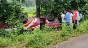स्टेयरिंग फेल होने से बस पलटी, 4 साल की बच्ची की मौत, 3 गंभीर घायल