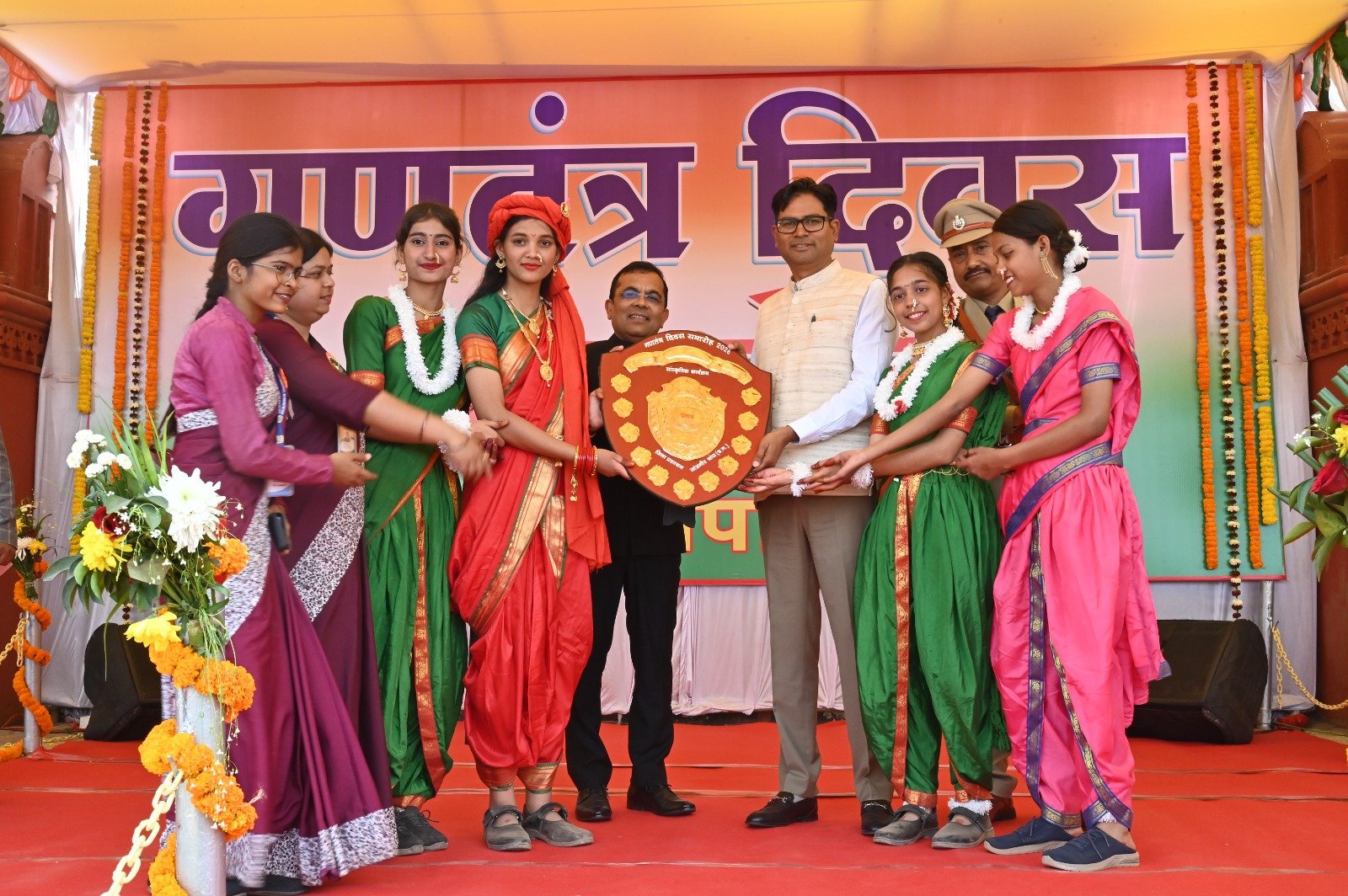 जांजगीर चांपा,जिले में 77 वां गणतंत्र दिवस समारोह हर्षाेल्लास के साथ मनाया गया मुख्य अतिथि वित्त,वाणिज्य कर,आवास एवं पर्यावरण योजना आर्थिक एवं सांख्यिकी एवं जिले के प्रभारी मंत्री ओ पी चौधरी ने हाई स्कूल मैदान जांजगीर में आयोजित जिला स्तरीय कार्यक्रम में राष्ट्रीय ध्वज फहराकर परेड की सलामी ली कार्यक्रम में हर्ष फायर के साथ शांति एवं उत्साह के प्रतीक गुब्बारे आसमान में छोड़े गए साथ ही मुख्य अतिथि ने परेड का निरीक्षण किया गया उन्होंने मुख्यमंत्री विष्णु देव साय के द्वारा आम नागरिकों के नाम संदेश का वाचन किया। श्री चौधरी ने स्वतंत्रता संग्राम सेनानियों व शहीदों के परिजन को शॉल व श्रीफल भेंट कर सम्मानित किया उन्होंने उत्कृष्ट कार्य करने वाले विभिन्न विभागों के अधिकारियों कर्मचारियों को प्रशस्ति पत्र,झांकी एवं परेड में विजेता टीम को शील्ड एवं प्रशस्ति पत्र प्रदान कर सम्मानित किया।