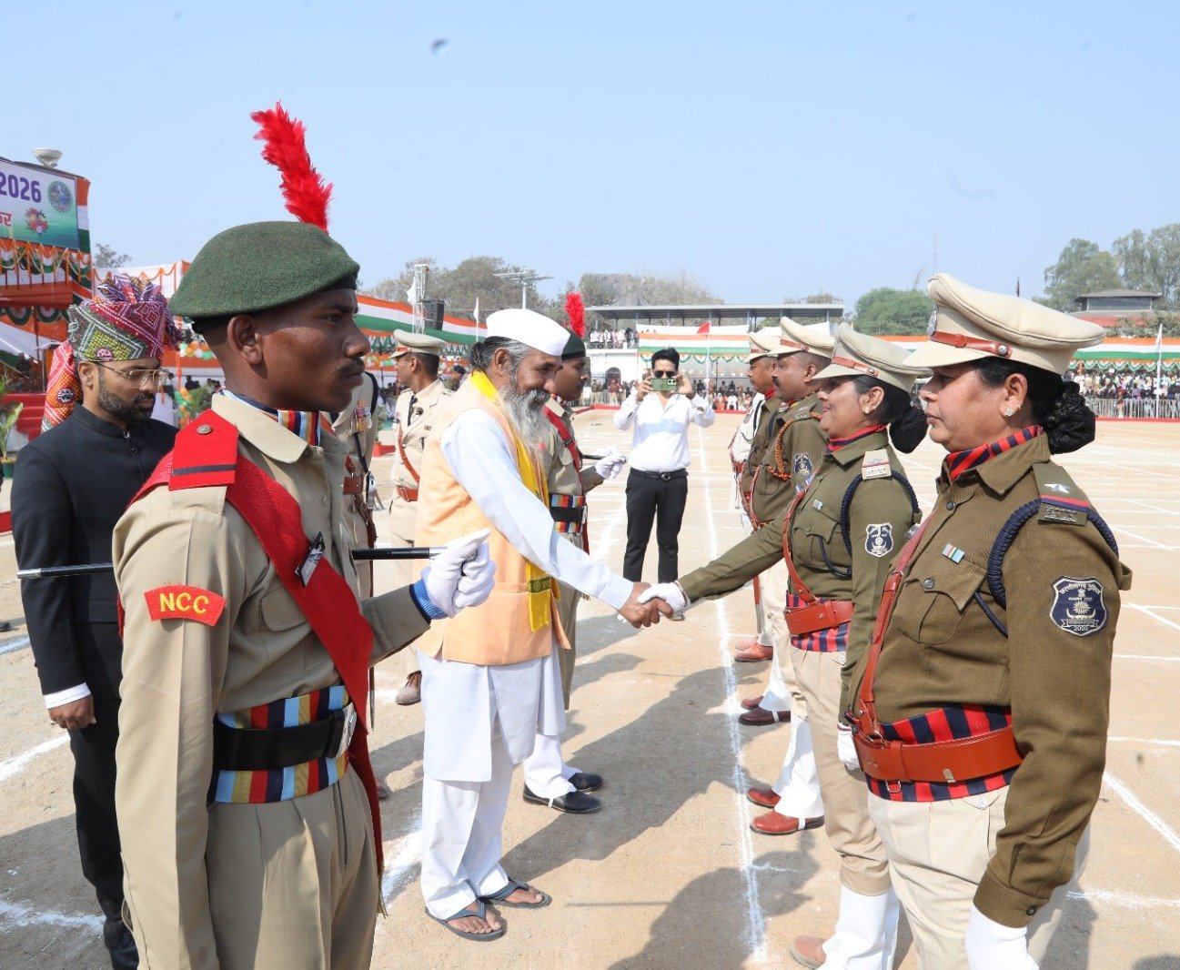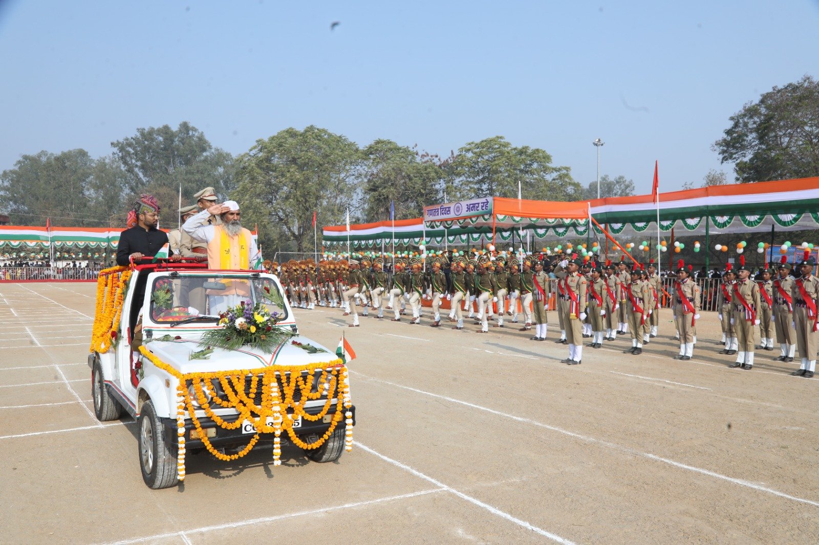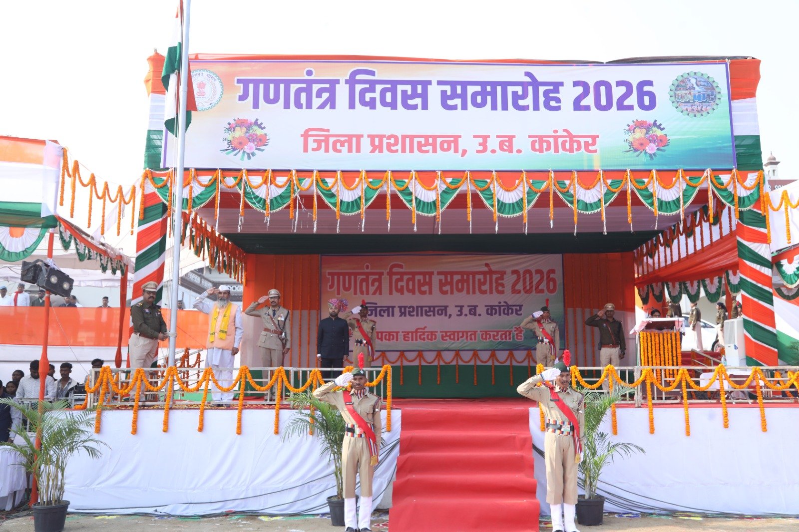 उत्तर बस्तर कांकेर ,ले में राष्ट्रीय पर्व 77वां गणतंत्र दिवस हर्ष उल्लास एवं गरिमामय ढंग से मनाया गया गणतंत्र दिवस समारोह के मुख्य अतिथि कांकेर सांसद श भोजराज नाग ने नरहरदेव शासकीय उच्चतर माध्यमिक विद्यालय के खेल परिसर में आयोजित जिला स्तरीय समारोह में प्रातः 09 बजे ध्वजारोहण कर परेड की सलामी ली इसके बाद उन्होंने परेड का निरीक्षण किया,इस मौके पर जिले के कलेक्टर निलेशकुमार महादेव क्षीरसागर और पुलिस अधीक्षक निखिल राखेचा भी उनके साथ थे परेड निरीक्षण पश्चात उन्हांने मुख्यमंत्री विष्णुदेव साय का प्रदेश की जनता के नाम संदेश का वाचन किया हर्ष फायर पश्चात पुलिस,होमगार्ड,बस्तर फाईटर्स,वन रक्षक, एनसीसी एवं स्काउट गाइड के कैडेटों द्वारा आकर्षक मार्चपास्ट किया गया मार्च पास्ट के प्लांटून कमांडरों से परिचय प्राप्त करने के बाद मुख्य अतिथि श्री नाग ने समारोह में शहीद जवानों के परिजनों को शॉल एवं श्रीफल भेंटकर सम्मानित किया इसके उपरांत विभिन्न स्कूलों के लगभग 1 हजार विद्यार्थियों ने एक साथ सामूहिक व्यायाम किया,इसके बाद उनके द्वारा मनमोहक सांस्कृतिक कार्यक्रम प्रस्तुत किए गये।