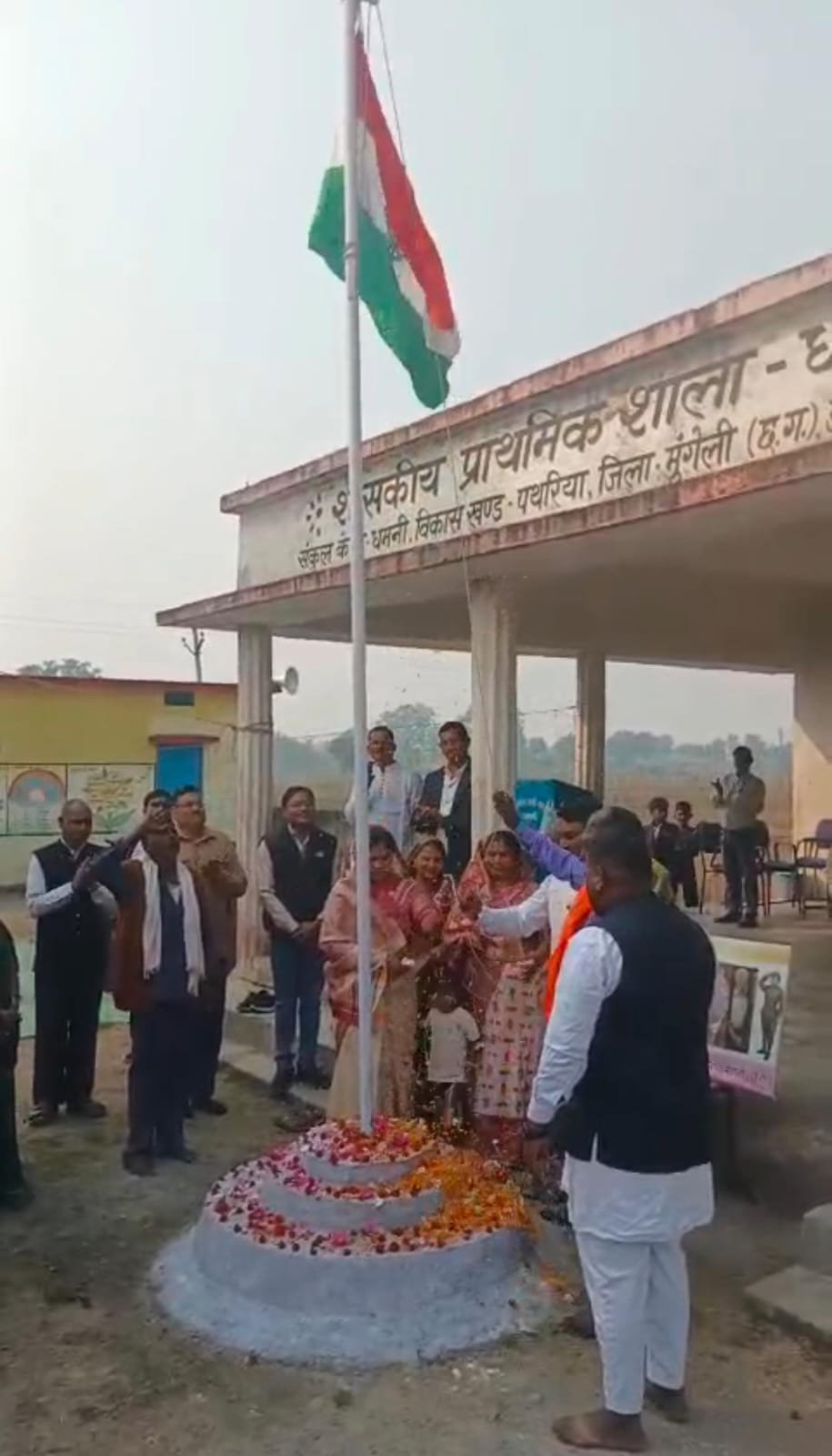 सरगांव,ग्राम पंचायत धमनी में 77वां गणतंत्र दिवस अत्यंत हर्षोल्लास गरिमा और देशभक्ति की भावना के साथ संपन्न हुआ। इस अवसर पर प्राथमिक शाला धमनी पूर्व माध्यमिक शाला धमनी एवं हाईस्कूल धमनी सहित मस्जिद धमनी,ग्राम पंचायत भवन तथा आंगनबाड़ी केंद्र क्रमांक 1 एवं 2 में ध्वजारोहण किया गया। यह आयोजन गांव की सामाजिक समरसता और राष्ट्रीय एकता का सशक्त उदाहरण बना। गणतंत्र दिवस के उपलक्ष्य में गांव में प्रभात फेरी निकाली गई, जिसमें स्कूली छात्र-छात्राएं, शिक्षक, जनप्रतिनिधि एवं ग्रामीण बड़ी संख्या में शामिल हुए। देशभक्ति नारों और गीतों से संपूर्ण गांव राष्ट्रप्रेम के रंग में रंगा नजर आया। मुख्य कार्यक्रम का आयोजन प्राथमिक शाला धमनी में किया गया।