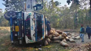 प्राप्त जानकारी के अनुसार, ट्रक अमलीपदर क्षेत्र की ओर से धान लेकर आ रहा था। बिन्द्रानवागढ़ मोड़ के पास तेज गति और संभवतः मोड़ पर संतुलन बिगड़ने के कारण ट्रक पलट गया। हादसा इतना गंभीर था कि ट्रक पूरी तरह सड़क से नीचे की ओर झुकते हुए पलट गया और उसमें भरा धान आसपास बिखर गया।