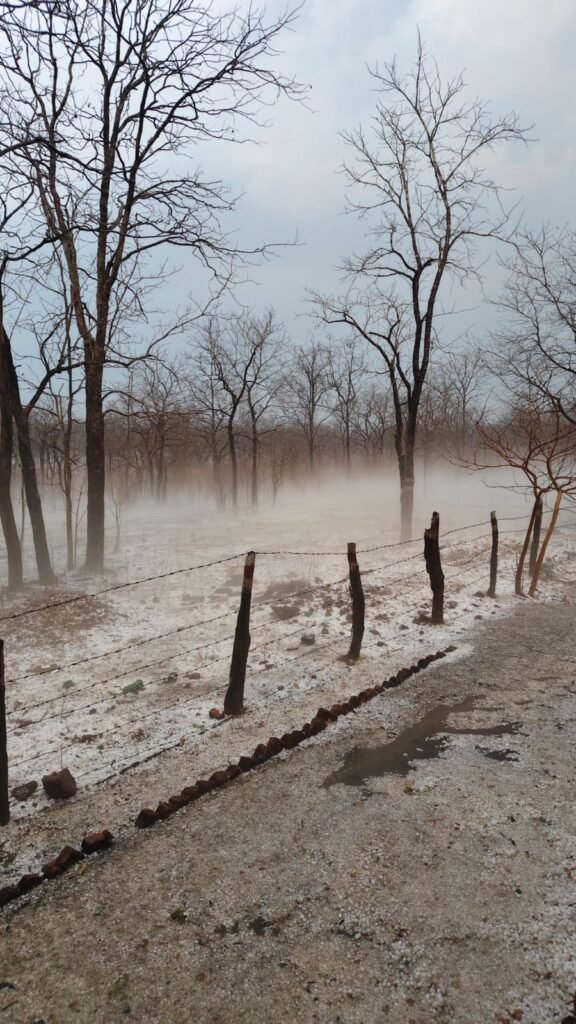 (संवाद एक्सप्रेस)गरियाबंद। छत्तीसगढ़ का गरियाबंद जिला एक बार फिर प्रकृति के अद्भुत और दुर्लभ रूप का गवाह बना है। जिले के ओड़ गांव में देर रात हुई तेज बारिश और जबरदस्त ओलावृष्टि ने पूरे इलाके की तस्वीर ही बदल दी। सुबह जब लोग अपने घरों से बाहर निकले, तो उनके सामने जो दृश्य था, वह किसी सपने से कम नहीं था—चारों ओर सफेदी ही सफेदी, मानो धरती पर बर्फ की मोटी चादर बिछ गई हो।