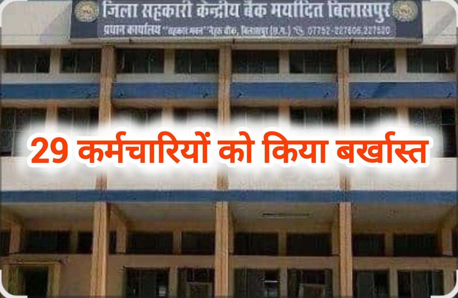 बिलासपुर । जिला सहकारी केंद्रीय बैंक बिलासपुर में दूषित प्रक्रिया के तहत भर्ती हुए 29 कर्मचारियों को पुनः सेवा से हटा दिया गया है। यह फैसला बैंक की स्टाफ कमेटी की बैठक में लिया गया।