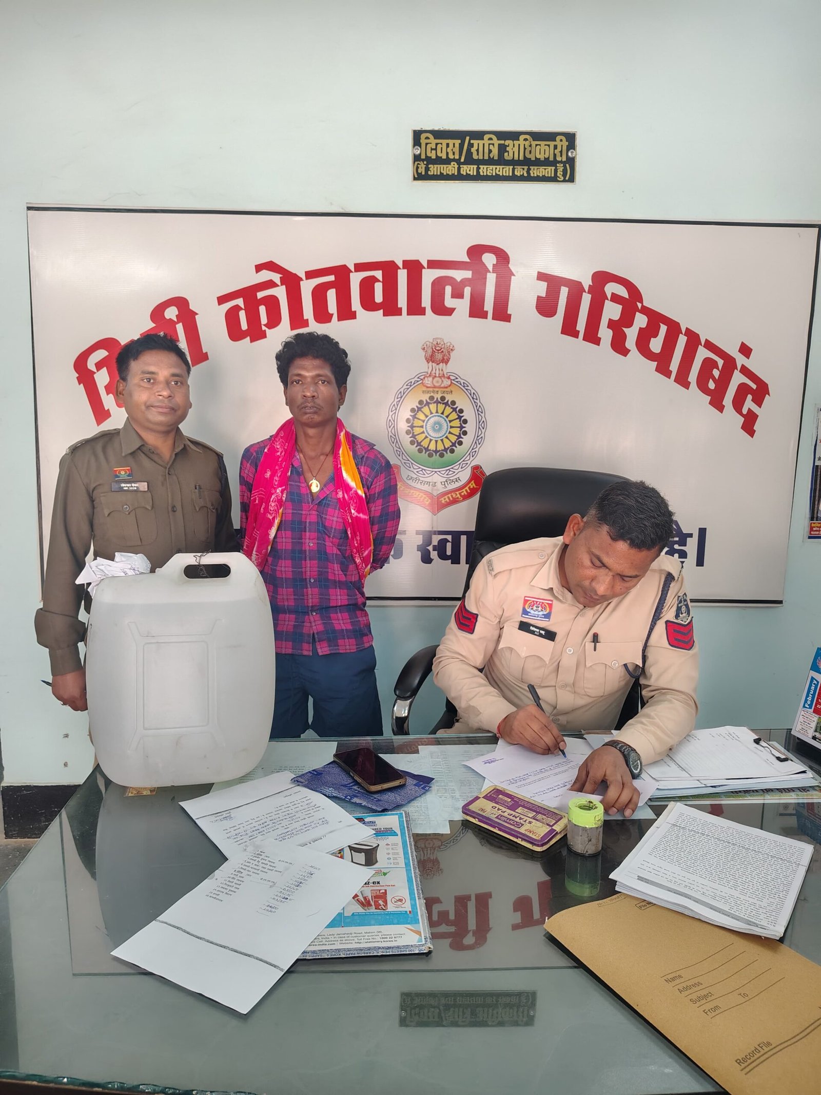 मिली जानकारी के अनुसार, थाना गरियाबंद को मुखबिर से खबर मिली कि एक सज्जन अपने घर को मिनी शराब गोदाम में बदलकर बिक्री की तैयारी में जुटे हैं। सूचना मिलते ही पुलिस टीम ने बिना देर किए मौके पर दबिश दी। घर की तलाशी में सफेद रंग की जरकिन में भरी 20 लीटर कच्ची महुआ शराब बरामद हुई, जिसकी कीमत लगभग 2000 रुपये बताई जा रही है।