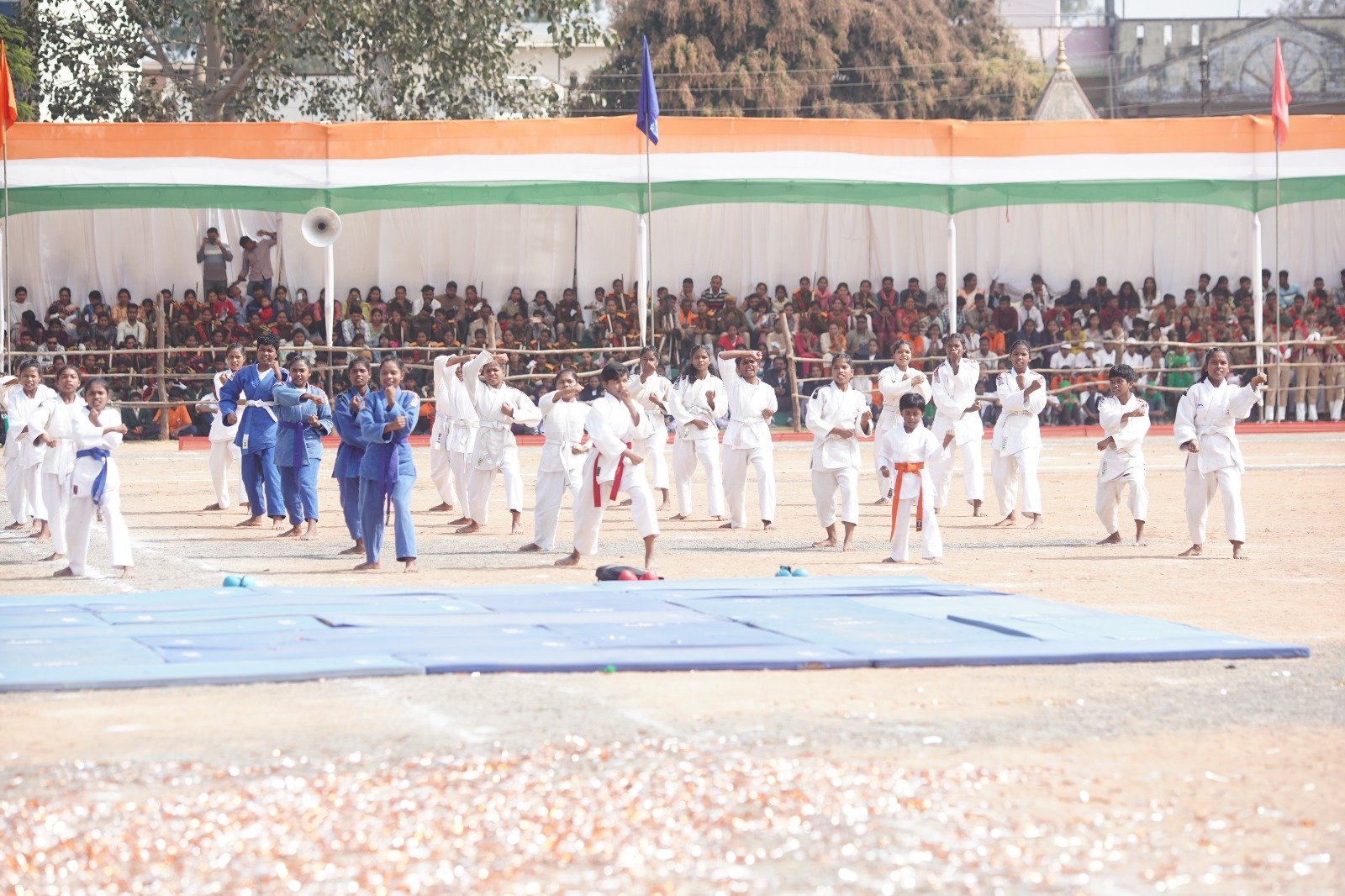 कोंडागांव,जिले में 77वाँ गणतंत्र दिवस समारोह पूरे उत्साह और हर्षाेल्लास के साथ मनाया गया जिला मुख्यालय के विकास नगर स्टेडियम में आयोजित मुख्य समारोह में बस्तर विकास प्राधिकरण की उपाध्यक्ष एवं कोंडागांव विधायक सुश्री लता उसेंडी ने राष्ट्रीय ध्वज फहराया और परेड की सलामी ली इसके बाद विधायक सुश्री उसेण्डी ने कलेक्टर श्रीमती नूपुर राशि पन्ना और पुलिस अधीक्षक पंकज चंद्रा के साथ परेड का निरीक्षण किया साथ उत्साह के प्रतीक तीन रंगों के गुब्बारे आसमान में छोड़े गये इस दौरान अर्द्धसैनिक बल और पुलिस बल के जवानों के साथ नगर सेना,एनसीसी एवं एनएसएस के कैडेटों ने देश सेवा की जज्बे के साथ आकर्षक मार्च पास्ट किया।