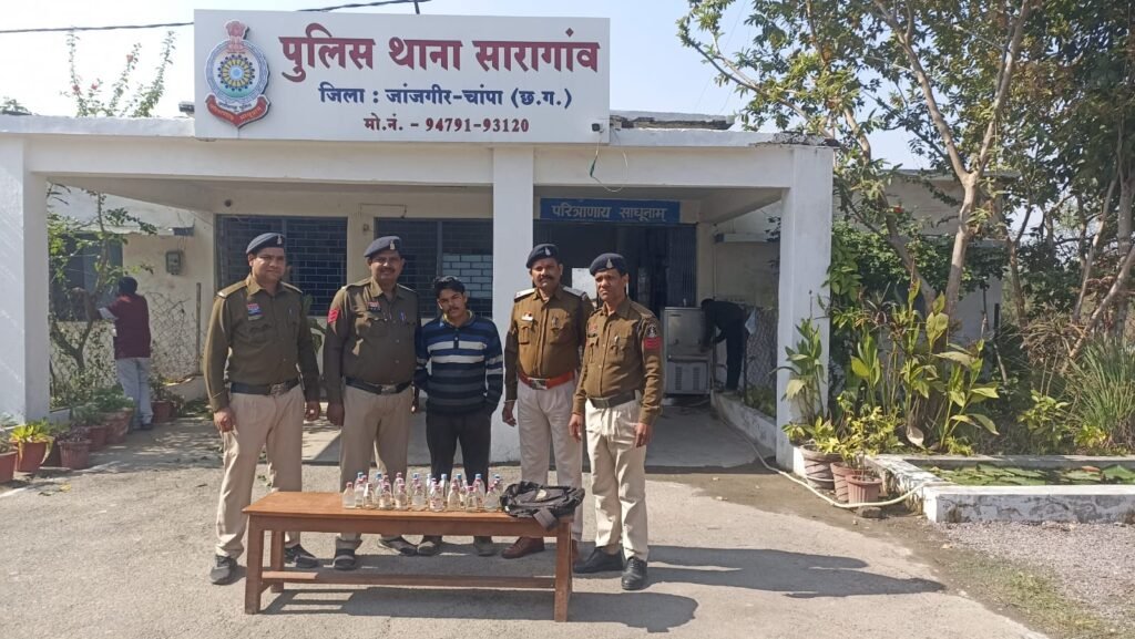 जांजगीर चांपा,पुलिस अधीक्षक विजय कुमार पाण्डेय (IPS) के निर्देशन में जिले में अवैध शराब बिक्री पर अंकुश लाने के लिए जिला पुलिस जांजगीर द्वारा लगातार कार्रवाई की जा रही है इसी क्रम में थाना सारागांव पुलिस द्वारा अवैध शराब बिक्री करने वाले के विरुद्ध रेड कार्यवाही कर आरोपी राम यादव उर्फ बड़कू को घेराबंदी कर पकड़ा जिसके कब्जे से बत्तीस पाव देशी प्लेन शराब कीमती बत्तीस सौ साठ बरामद किया जाकर आरोपी के विरुद्ध आबकारी एक्ट के तहत अपराध पंजीबद्ध कर विधिवत गिरफ्तार कर न्यायिक रिमाण्ड पर भेजा गया है
