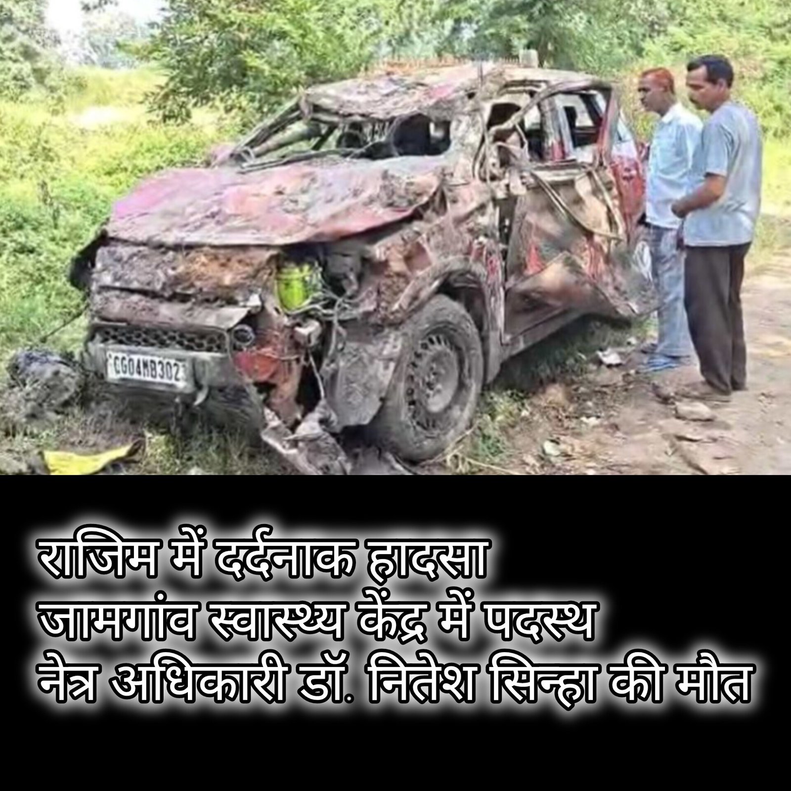 राजिम। गरियाबंद जिले के राजिम क्षेत्र के किरवई गांव में बुधवार की देर रात एक दर्दनाक सड़क हादसा हो गया। फिंगेश्वर के जामगांव स्वास्थ्य केंद्र में पदस्थ सहायक नेत्र अधिकारी डॉ. नितेश सिन्हा की कार अनियंत्रित होकर सड़क किनारे स्थित दलदल भरे तालाब में जा गिरी, जिससे उनकी मौके पर ही मौत हो गई।